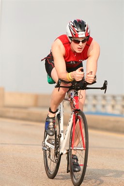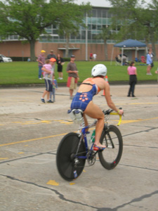 The water was calm and the swim waves were leaving on time. Mark, Joanna’s husband spotted me as I walked toward the start. He advised me that Joanna was in the lead and we watched her take off ahead of all the pro women. Mark told me to watch out for water bottles on the course because the roads were rough. We decided we would meet up to celebrate after the race. I wished we were already drinking hurricanes in the French quarter because my nerves were creeping up as I glanced at my watch and saw I was about 30 min from my wave start.